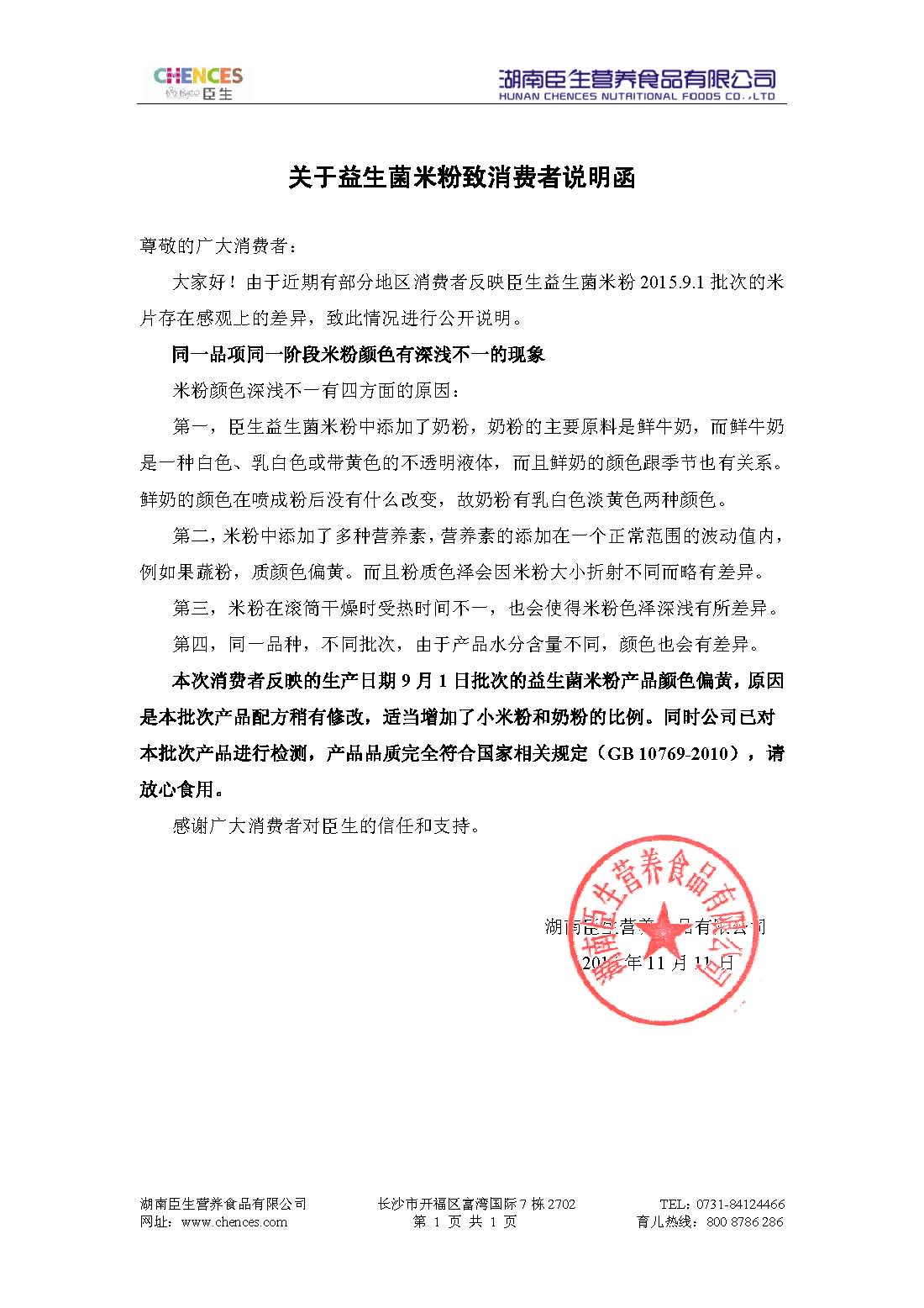 關于益生菌米粉致消費者說明函2016-01-27+ 查看詳情